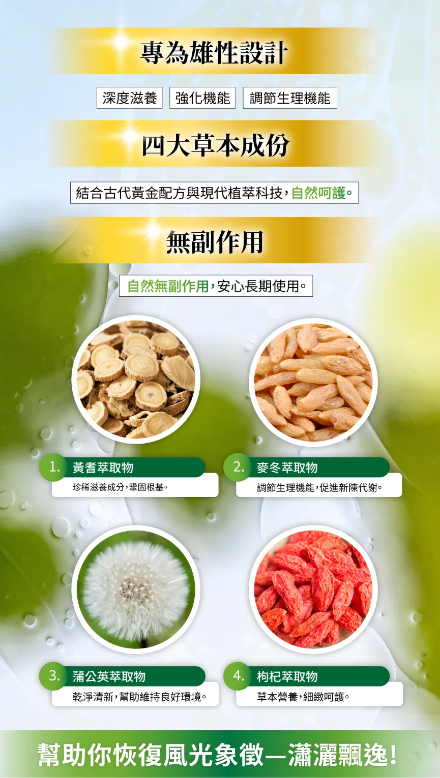 ✅ 黃耆萃取物 – 珍稀滋養成分,鞏固根基。