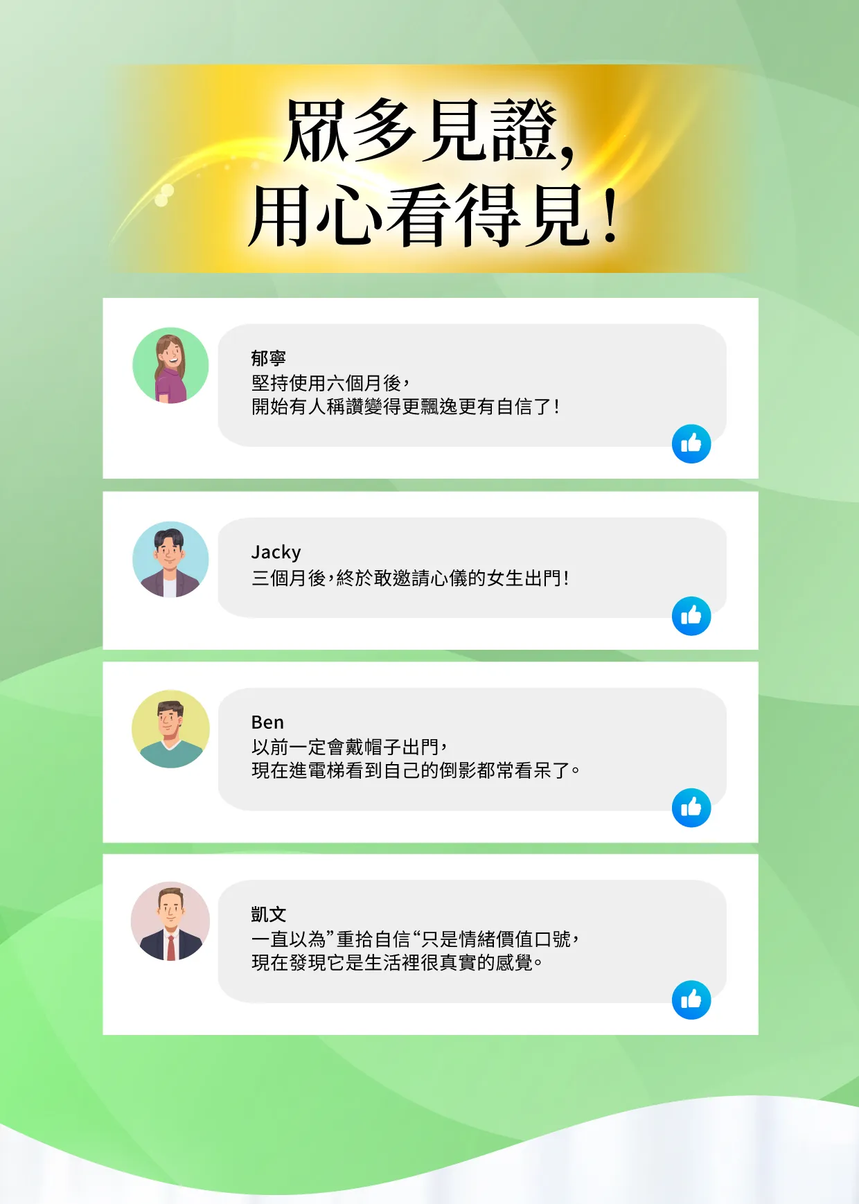 四大草本成分:結合古代黃金配方與現代植萃科技,自然呵護。
